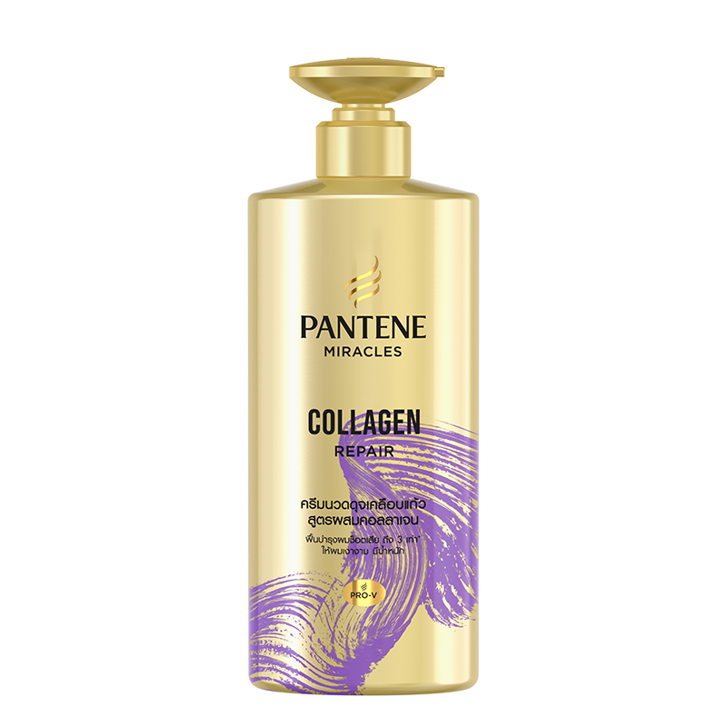 ครีมนวดผมเซรั่ม แพนทีนโกลด์ คอลลาเจน รีแพร์ ทรี-มินิท มิราเคิล สูตรเข้มข้น ผสานพลังจากส่วนผสมของโปร-วิตามินบี 5 และคอลลาเจนซึ่งเป็นโปรตีนที่บำรุงล้ำลึกถึงรากผม ช่วยให้เส้นผมสุขภาพดีจากภายในสู่ภายนอก พลังการบำรุงจากคอลลาเจนเข้มข้นจะช่วยปกป้องผมและฟื้นฟูผมแห้ง ผมอ่อนแอ ผมเสีย ให้กลับมาสวยเรียบเนียน และดูมีสุขภาพดี เซรั่มเข้มข้นในครีมนวดผมจะช่วยเคลือบและปกป้องเส้นผมจากการเสียดสี จึงมั่นใจได้ว่าผมที่เคยเสียจะได้รับการซ่อมแซมเป็นพิเศษจากสารอาหารและวิตามินที่เป็นประโยชน์ โดยปราศจากสิ่งรบกวน